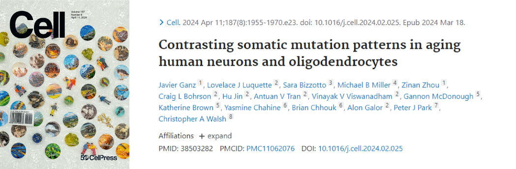 摘要:Characterizing somatic mutations in the brain is important for disentangling the complex mechanisms of aging, yet little is known about mutational patterns in different brain cell types. Here, we performed whole-genome sequencing (WGS) of 86 single oligodendrocytes, 20 mixed glia, and 56 single neurons from neurotypical individuals spanning 0.4–104 years of age and identified >92,000 somatic single-nucleotide variants (sSNVs) and small insertions/deletions (indels). Although both cell types accumulate somatic mutations linearly with age, oligodendrocytes accumulated sSNVs 81% faster than neurons and indels 28% slower than neurons. Correlation of mutations with single-nucleus RNA profiles and chromatin accessibility from the same brains revealed that oligodendrocyte mutations are enriched in inactive genomic regions and are distributed across the genome similarly to mutations in brain cancers. In contrast, neuronal mutations are enriched in open, transcriptionally active chromatin. These stark differences suggest an assortment of active mutagenic processes in oligodendrocytes and neurons.