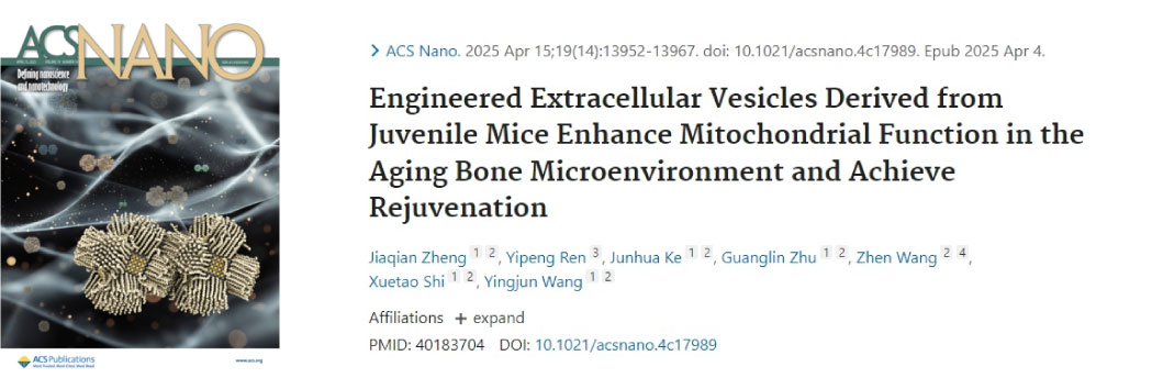 摘要:Aging-related bone degeneration and impaired healing capacity remain significant challenges in regenerative medicine, necessitating innovative, efficient, and targeted strategies to restore bone health. Here, we engineered extracellular vesicles (EVs) derived from the serum of pretreated juvenile mice, with the goals of reversing aging, enhancing osteogenic potential, and increasing bioavailability to rejuvenate the aging bone environment. First, we established bone healing models representing different phases of healing to identify the EV type with the highest potential for improving the bone microenvironment in older individuals. Second, we employed DSS6 for bone targeting to enhance the biological effects of the selected EVs in vivo. The engineered EVs effectively targeted bone repair sites and promoted fracture healing more effectively than unmodified EVs in older mice. RNA sequencing revealed that the translocase of outer mitochondrial membrane 7 (Tomm7) is crucial for the underlying mechanism. Silencing Tomm7 significantly diminished the positive regulatory effects of the EVs. Specifically, the engineered EVs may enhance mitochondrial function in aging cells by activating the Tomm7-mediated Pink1/Parkin mitophagy pathway, promoting stemness recovery in aging bone marrow stromal cells (BMSCs) and reversing the adverse conditions of the aging bone microenvironment. Overall, the developed engineered EVs derived from serum from juvenile mice offer an alternative approach for treating aging bones. The identified underlying biological mechanisms provide a valuable reference for precision treatment of aging bones in the future.