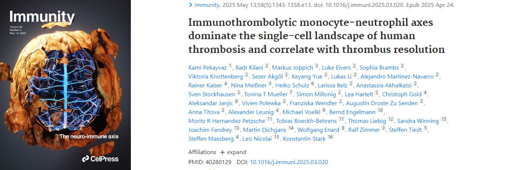 作者单位:德国慕尼黑大学摘要:Thrombotic diseases remain the major cause of death and disability worldwide, and the contribution of inflammation is increasingly recognized. Thromboinflammation has been identified as a key pathomechanism, but an unsupervised map of immune-cell states, trajectories, and intercommunication at a single-cell level has been lacking.