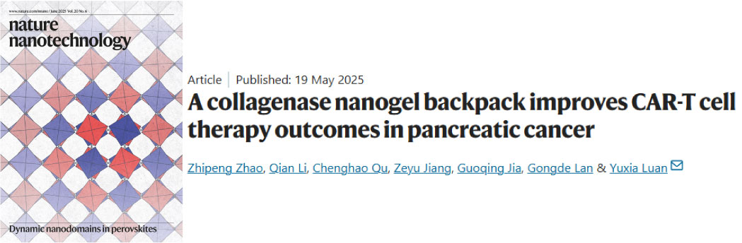 摘要:Chimeric antigen receptor (CAR) T cell therapy has revolutionized the treatment of haematological malignancies. Challenges in overcoming physical barriers however greatly limit CAR-T cell efficacy in solid tumours. Here we show that an approach based on collagenase nanogel generally improves the outcome of T cell-based therapies, and specifically of CAR-T cell therapy. The nanogels are created by cross-linking collagenase and subsequently modifying them with a CXCR4 antagonist peptide. These nanogels can bind CAR-T cells via receptor–ligand interaction, resulting in cellular backpack delivery systems. The nanogel backpacks modulate tumoural infiltration and localization of CAR-T cells by surmounting physical barriers and disrupting chemokine-mediated CAR-T cell imprisonment, thereby addressing their navigation deficiency within solid tumours. Our approach offers a promising strategy for pancreatic cancer therapy and holds potential for advancing CAR-T cell therapy towards clinical applications.