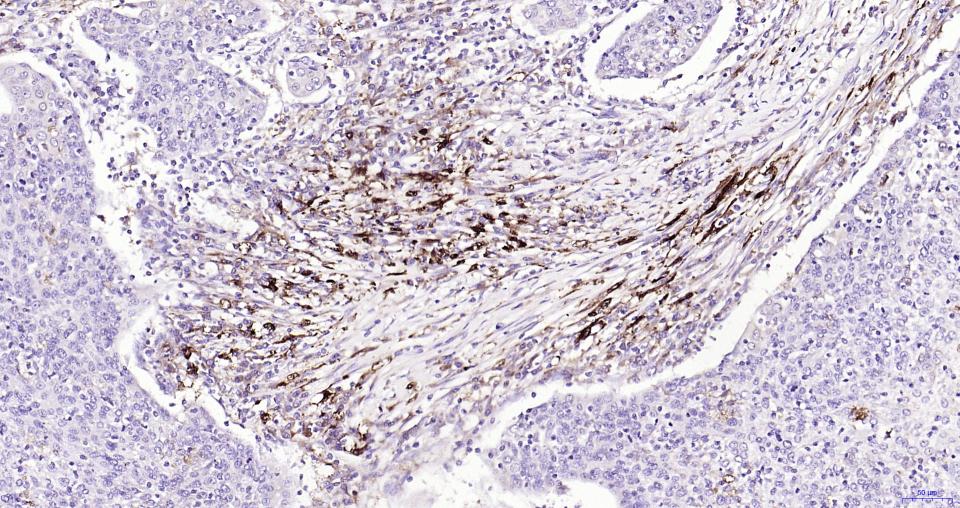 Paraformaldehyde-fixed, paraffin embedded Human Cervical Cancer; Antigen retrieval by boiling in sodium citrate buffer (pH6.0) for 15 min; Antibody incubation with Nrf2 Monoclonal Antibody, Unconjugated(bsm-61093R) at 1:200 overnight at 4°C, followed by conjugation to the SP Kit (Rabbit, SP-0023) and DAB (C-0010) staining.