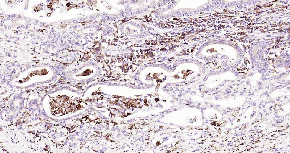 Paraformaldehyde-fixed, paraffin embedded Human Pancreatic Cancer; Antigen retrieval by boiling in sodium citrate buffer (pH6.0) for 15 min; Antibody incubation with Nrf2 Monoclonal Antibody, Unconjugated(bsm-61093R) at 1:200 overnight at 4°C, followed by conjugation to the SP Kit (Rabbit, SP-0023) and DAB (C-0010) staining.