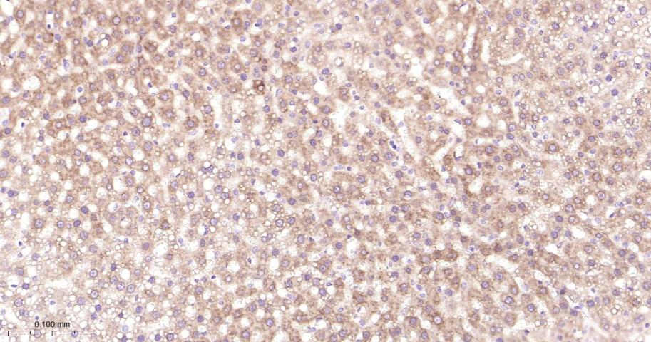 Paraformaldehyde-fixed, paraffin embedded Rat Liver; Antigen retrieval by boiling in sodium citrate buffer (pH6.0) for 15 min; Antibody incubation with Nrf2 Monoclonal Antibody, Unconjugated(bsm-61093R) at 1:200 overnight at 4°C, followed by conjugation to the bs-0295G-HRP and DAB (C-0010) staining.
