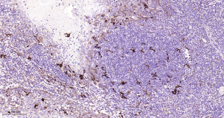 Paraformaldehyde-fixed, paraffin embedded Human Tonsil; Antigen retrieval by boiling in sodium citrate buffer (pH6.0) for 15 min; Antibody incubation with Nrf2 Monoclonal Antibody, Unconjugated(bsm-61093R) at 1:200 overnight at 4°C, followed by conjugation to the bs-0295G-HRP and DAB (C-0010) staining.