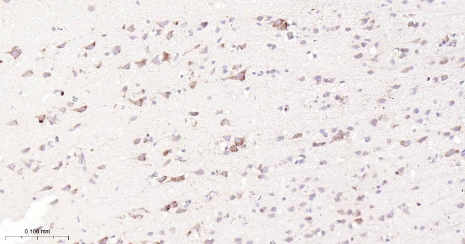 Paraformaldehyde-fixed, paraffin embedded Human Cerebrum; Antigen retrieval by boiling in sodium citrate buffer (pH6.0) for 15 min; Antibody incubation with Nrf2 Monoclonal Antibody, Unconjugated(bsm-61093R) at 1:200 overnight at 4°C, followed by conjugation to the bs-0295G-HRP and DAB (C-0010) staining.