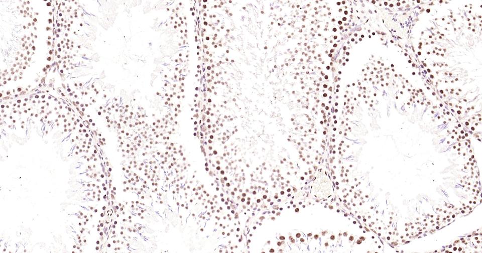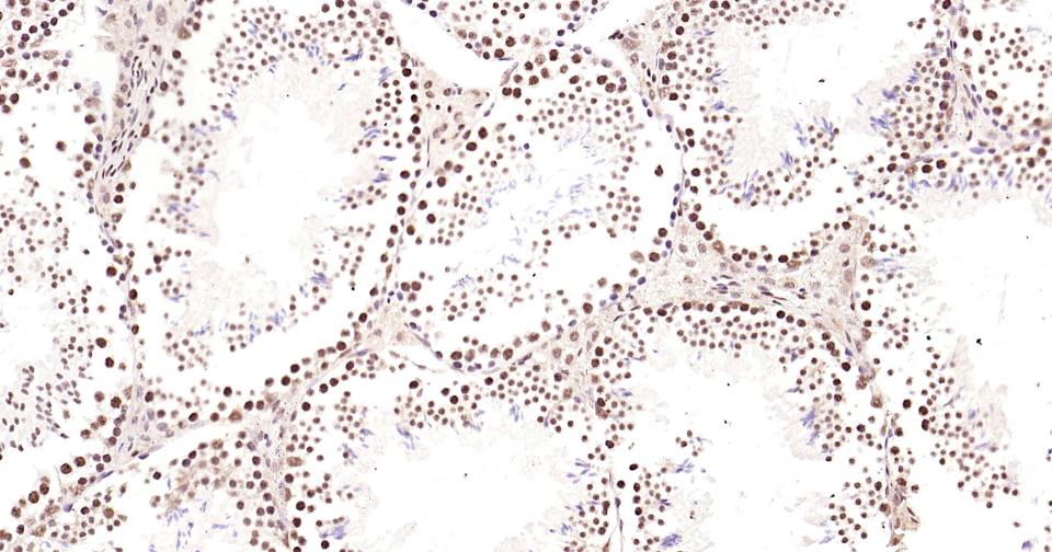 Paraformaldehyde-fixed, paraffin embedded Mouse Testicles; Antigen retrieval by boiling in sodium citrate buffer (pH6.0) for 15 min; Antibody incubation with Phospho-CREB-1 (Ser133) Monoclonal Antibody, Unconjugated(bsm-61105R) at 1:200 overnight at 4°C, followed by conjugation to the bs-0295G-HRP and DAB (C-0010) staining and DAB (C-0010) staining.