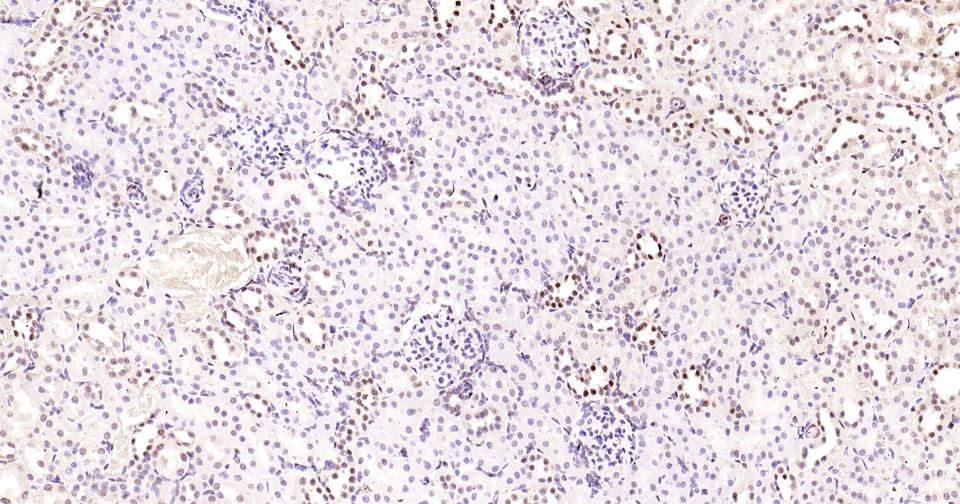 Paraformaldehyde-fixed, paraffin embedded Rat Kidney; Antigen retrieval by boiling in sodium citrate buffer (pH6.0) for 15 min; Antibody incubation with Phospho-CREB-1 (Ser133) Monoclonal Antibody, Unconjugated(bsm-61105R) at 1:200 overnight at 4°C, followed by conjugation to the bs-0295G-HRP and DAB (C-0010) staining and DAB (C-0010) staining.