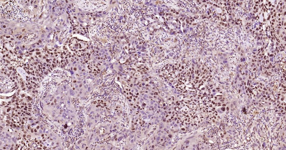 Paraformaldehyde-fixed, paraffin embedded Human Lung Cancer; Antigen retrieval by boiling in sodium citrate buffer (pH6.0) for 15 min; Antibody incubation with Phospho-CREB-1 (Ser133) Monoclonal Antibody, Unconjugated(bsm-61105R) at 1:200 overnight at 4°C, followed by conjugation to the bs-0295G-HRP and DAB (C-0010) staining and DAB (C-0010) staining.