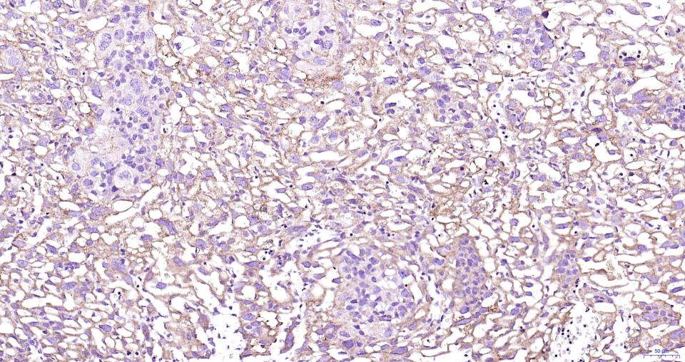 Paraformaldehyde-fixed, paraffin embedded Mouse placenta; Antigen retrieval by boiling in sodium citrate buffer (pH6.0) for 15 min; Antibody incubation with Adiponectin Monoclonal Antibody, Unconjugated (bsm-61121R) at 1:200 overnight at 4°C, followed by conjugation to the bs-0295G-HRP and DAB (C-0010) staining.