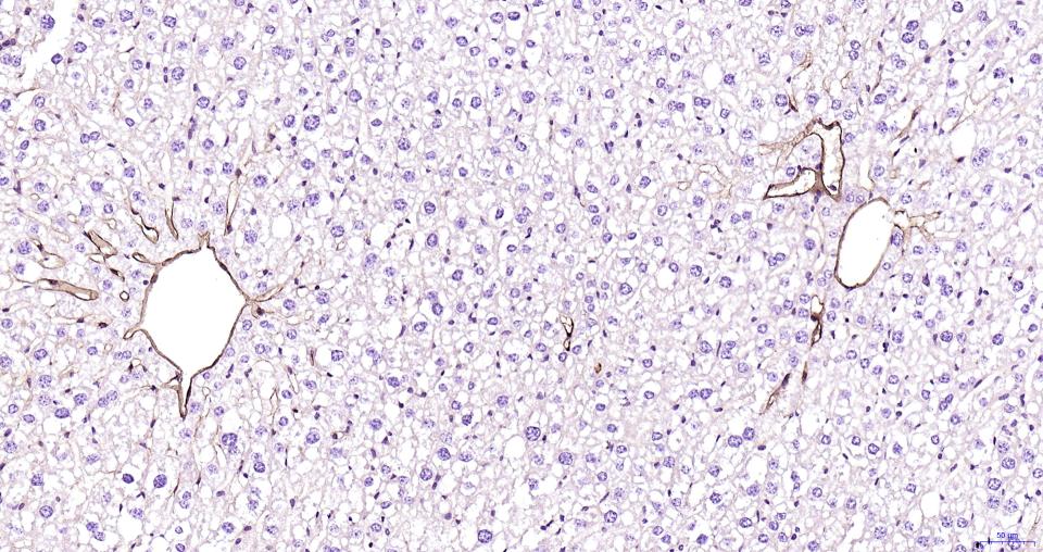 Paraformaldehyde-fixed, paraffin embedded Mouse liver; Antigen retrieval by boiling in sodium citrate buffer (pH6.0) for 15 min; Antibody incubation with Adiponectin Monoclonal Antibody, Unconjugated (bsm-61121R) at 1:200 overnight at 4°C, followed by conjugation to the bs-0295G-HRP and DAB (C-0010) staining.