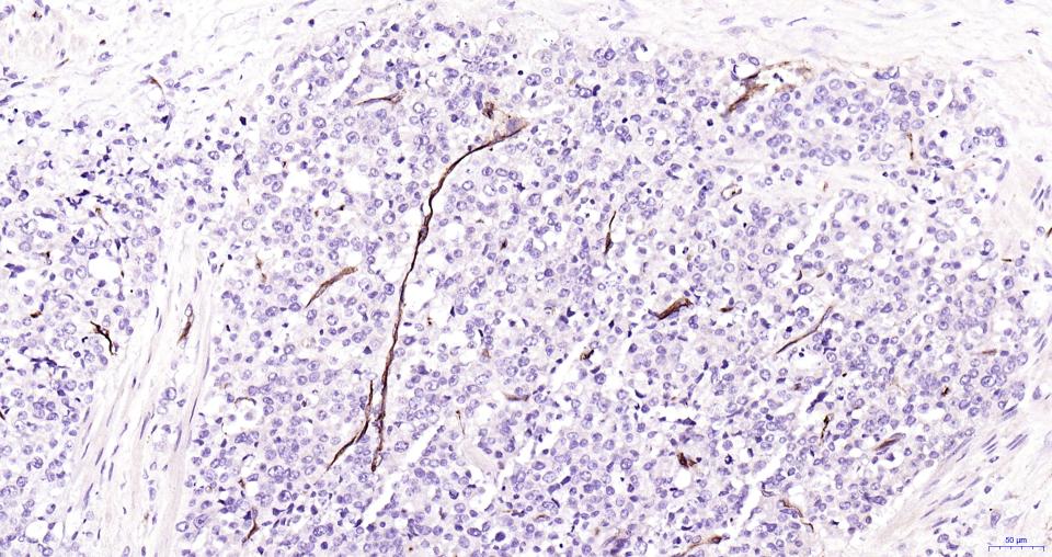 Paraformaldehyde-fixed, paraffin embedded Human Prostate tumors; Antigen retrieval by boiling in sodium citrate buffer (pH6.0) for 15 min; Antibody incubation with Adiponectin Monoclonal Antibody, Unconjugated (bsm-61125R) at 1:200 overnight at 4°C, followed by conjugation to the bs-0295G-HRP and DAB (C-0010) staining.