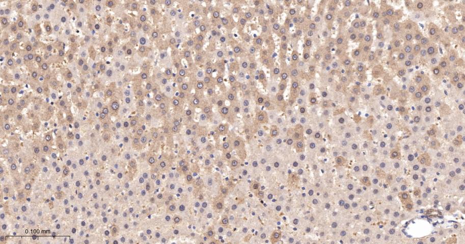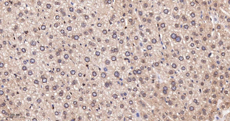 Paraformaldehyde-fixed, paraffin embedded Mouse Liver; Antigen retrieval by boiling in sodium citrate buffer (pH6.0) for 15 min; The section was incubated with SUMO1 Monoclonal Antibody, Unconjugated (bsm-61144R) at 1:200 overnight at 4°C, followed by conjugation to the bs-0295G-HRP and DAB (C-0010) staining.