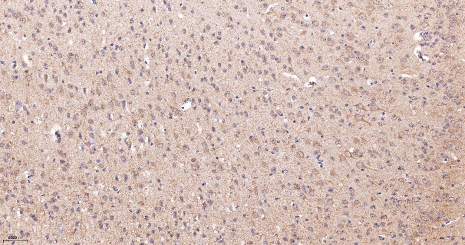 Paraformaldehyde-fixed, paraffin embedded Mouse Cerebrum; Antigen retrieval by boiling in sodium citrate buffer (pH6.0) for 15 min; The section was incubated with AKT1S1 Monoclonal Antibody, Unconjugated (bsm-61149R) at 1:200 overnight at 4°C, followed by conjugation to the bs-0295G-HRP and DAB (C-0010) staining.