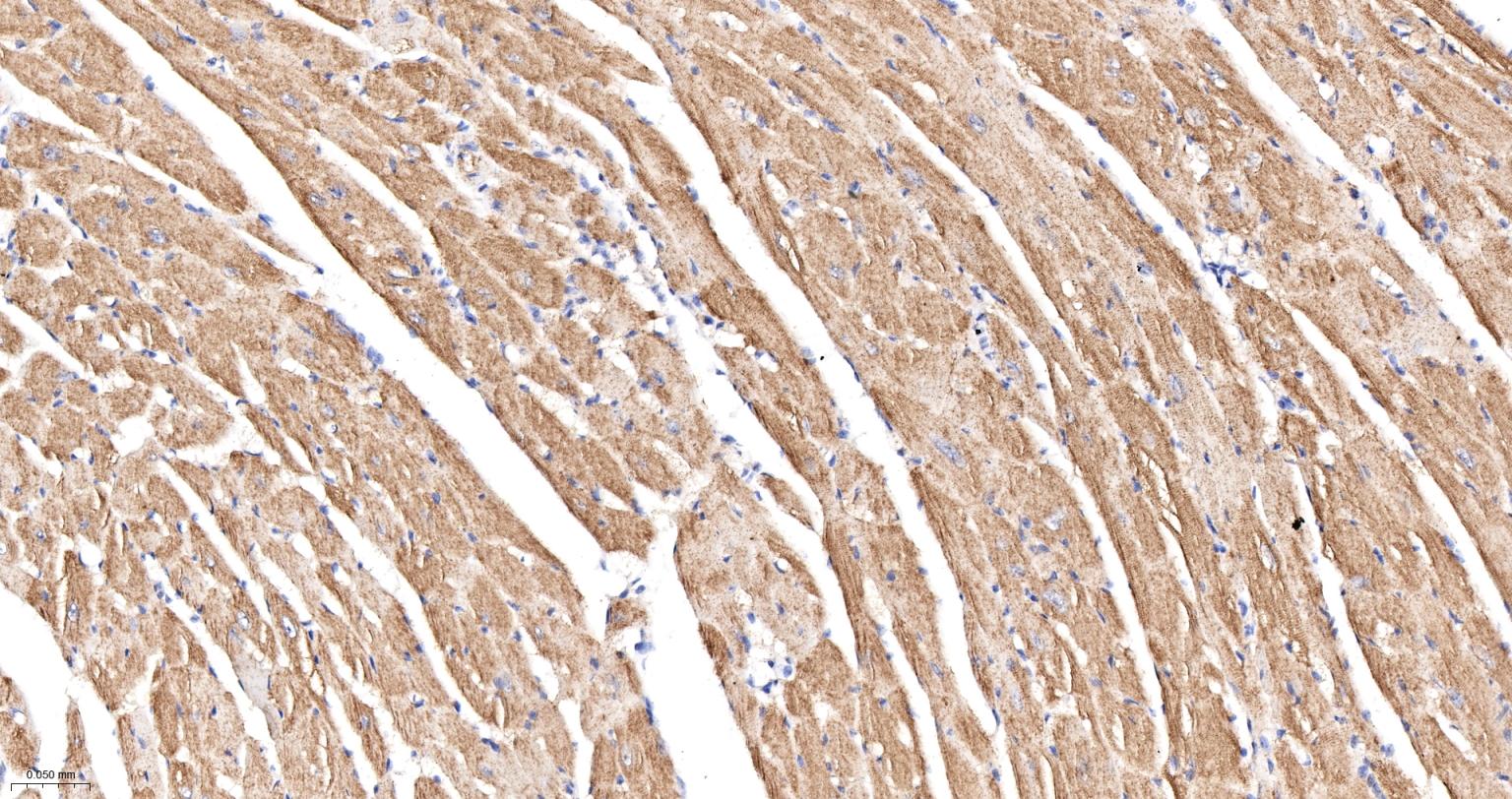 Paraformaldehyde-fixed, paraffin embedded Mouse Heart; Antigen retrieval by boiling in sodium citrate buffer (pH6.0) for 15 min; The section was incubated with AKT1S1 Monoclonal Antibody, Unconjugated (bsm-61149R) at 1:200 overnight at 4°C, followed by conjugation to the bs-0295G-HRP and DAB (C-0010) staining.