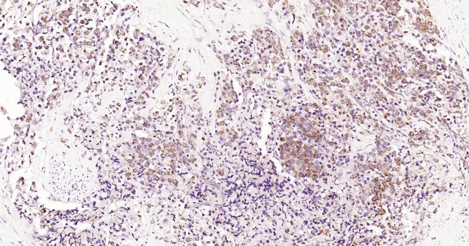 Paraformaldehyde-fixed, paraffin embedded Human Prostate Tumor; Antigen retrieval by boiling in sodium citrate buffer (pH6.0) for 15 min; Antibody incubation with PIK3C3 Monoclonal Antibody, Unconjugated(bsm-61161R) at 1:200 overnight at 4°C, followed by conjugation to the SP Kit (Rabbit, SP-0023) and DAB (C-0010) staining.
