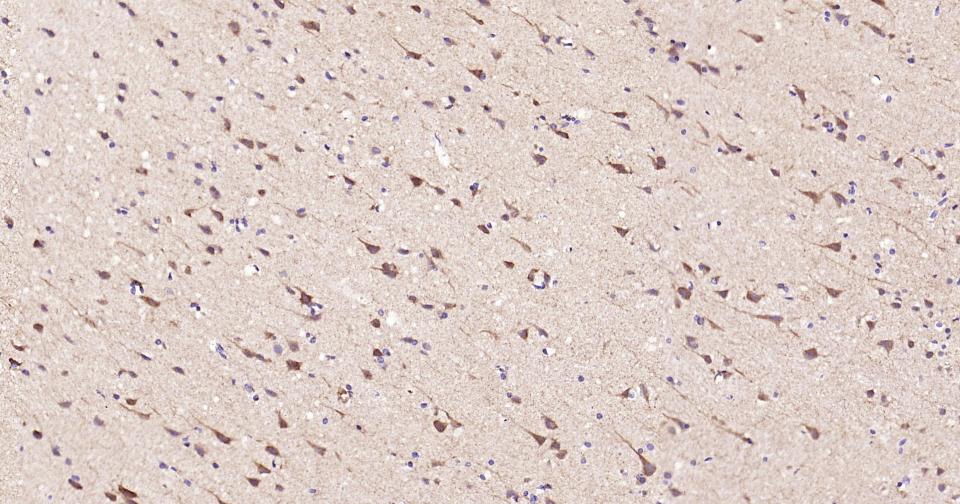 Paraformaldehyde-fixed, paraffin embedded Rat Cerebrum; Antigen retrieval by boiling in sodium citrate buffer (pH6.0) for 15 min; Antibody incubation with PIK3C3 Monoclonal Antibody, Unconjugated(bsm-61161R) at 1:200 overnight at 4°C, followed by conjugation to the SP Kit (Rabbit, SP-0023) and DAB (C-0010) staining.