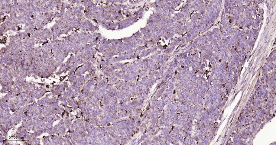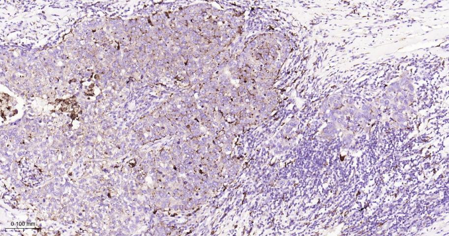Paraformaldehyde-fixed, paraffin embedded Human Cervical Cancer; Antigen retrieval by boiling in sodium citrate buffer (pH6.0) for 15 min; Antibody incubation with Cathepsin D Monoclonal Antibody, Unconjugated(bsm-61164R) at 1:200 overnight at 4°C, followed by conjugation to the bs-0295G-HRP and DAB (C-0010) staining.