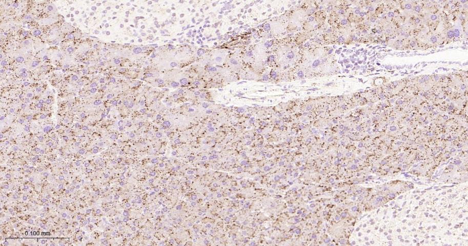 Paraformaldehyde-fixed, paraffin embedded Mouse Liver; Antigen retrieval by boiling in sodium citrate buffer (pH6.0) for 15 min; Antibody incubation with Cathepsin D Monoclonal Antibody, Unconjugated(bsm-61164R) at 1:200 overnight at 4°C, followed by conjugation to the bs-0295G-HRP and DAB (C-0010) staining.