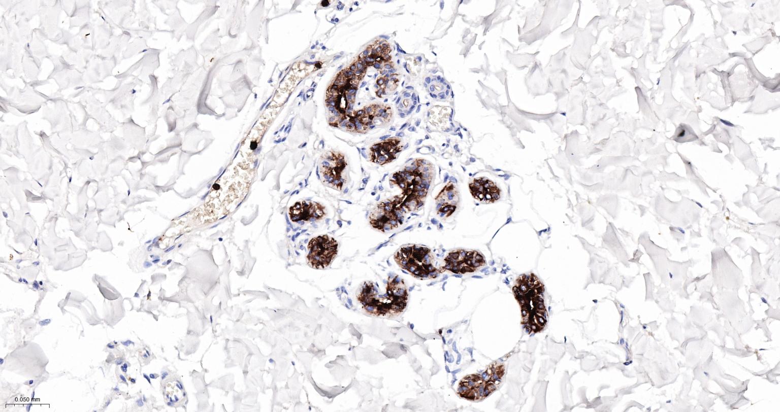 Paraformaldehyde-fixed, paraffin embedded Human Abdominal skin; Antigen retrieval by boiling in sodium citrate buffer (pH6.0) for 15 min; The section was incubated with S100A8 Monoclonal Antibody, Unconjugated (bsm-61167R) at 1:200 overnight at 4°C, followed by conjugation to the bs-0295G-HRP and DAB (C-0010) staining.