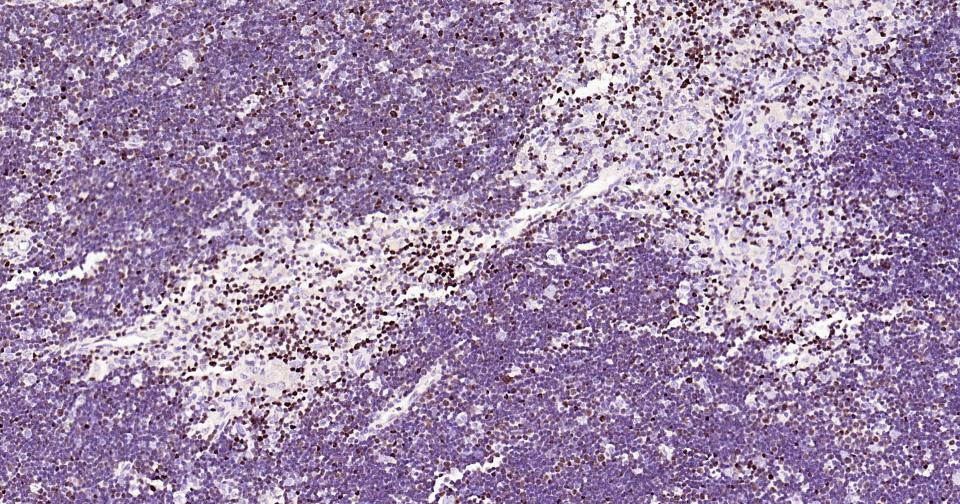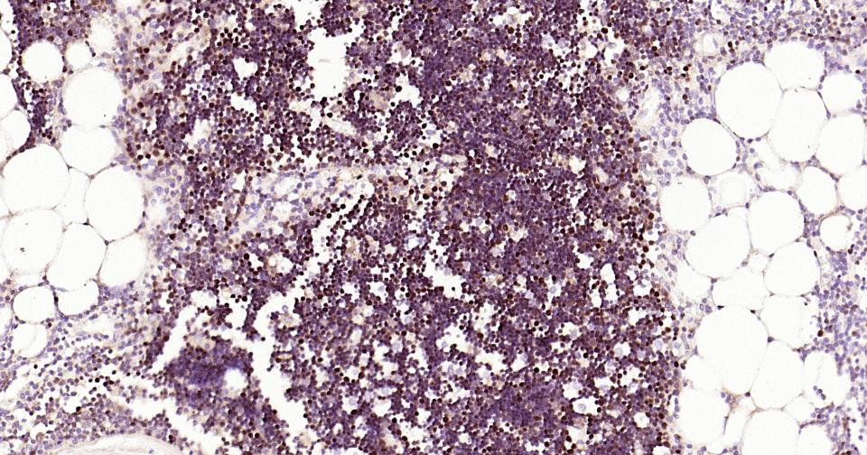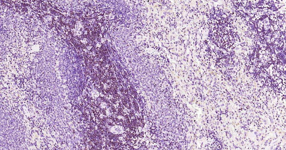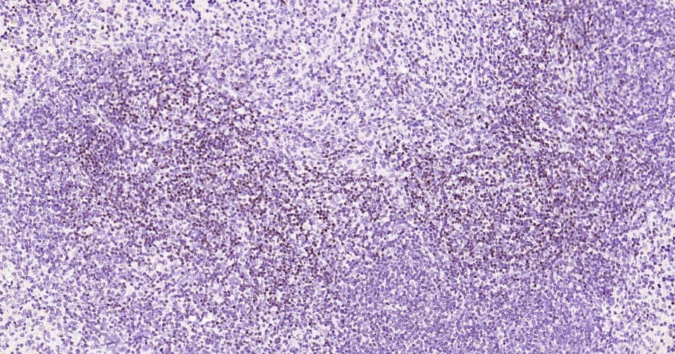 Paraformaldehyde-fixed, paraffin embedded Rat Spleen; Antigen retrieval by boiling in sodium citrate buffer (pH6.0) for 15 min; Antibody incubation with LEF1 Monoclonal Antibody, Unconjugated(bsm-61170R) at 1:200 overnight at 4°C, followed by conjugation to the SP Kit (Rabbit, SP-0023)and DAB (C-0010) staining.