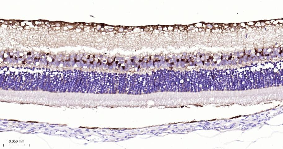Paraformaldehyde-fixed, paraffin embedded Rat Eye; Antigen retrieval by boiling in sodium citrate buffer (pH6.0) for 15 min; The section was incubated with DARPP32 Monoclonal Antibody, Unconjugated (bsm-61175R) at 1:200 overnight at 4°C, followed by conjugation to the bs-0295G-HRP and DAB (C-0010) staining.