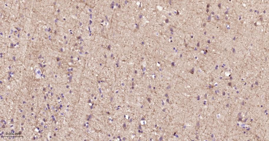 Paraformaldehyde-fixed, paraffin embedded Rat Cerebrum; Antigen retrieval by boiling in sodium citrate buffer (pH6.0) for 15 min; The section was incubated with DARPP32 Monoclonal Antibody, Unconjugated (bsm-61175R) at 1:200 overnight at 4°C, followed by conjugation to the bs-0295G-HRP and DAB (C-0010) staining.
