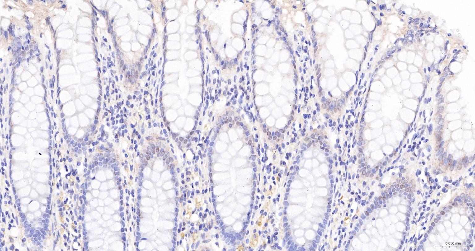 Paraformaldehyde-fixed, paraffin embedded Human Colon; Antigen retrieval by boiling in sodium citrate buffer (pH6.0) for 15 min; The section was incubated with NUP98 Monoclonal Antibody, Unconjugated (bsm-61197R) at 1:200 overnight at 4°C, followed by conjugation to the bs-0295G-HRP and DAB (C-0010) staining.