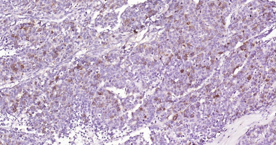 Paraformaldehyde-fixed, paraffin embedded Human Prostate Tumor; Antigen retrieval by boiling in sodium citrate buffer (pH6.0) for 15 min; Antibody incubation with Phospho-CDK1/2 (Thr14) Monoclonal Antibody, Unconjugated(bsm-61198R) at 1:200 overnight at 4°C, followed by conjugation to the SP Kit (Rabbit, SP-0023) and DAB (C-0010) staining.