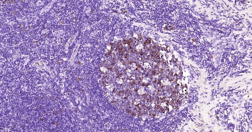Paraformaldehyde-fixed, paraffin embedded Rat Spleen; Antigen retrieval by boiling in sodium citrate buffer (pH6.0) for 15 min; Antibody incubation with Phospho-CDK1/2 (Thr14) Monoclonal Antibody, Unconjugated(bsm-61198R) at 1:200 overnight at 4°C, followed by conjugation to the SP Kit (Rabbit, SP-0023) and DAB (C-0010) staining.