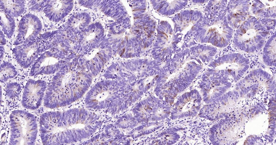 Paraformaldehyde-fixed, paraffin embedded Human Colon Cancer; Antigen retrieval by boiling in sodium citrate buffer (pH6.0) for 15 min; Antibody incubation with Phospho-CDK1/2 (Thr14) Monoclonal Antibody, Unconjugated(bsm-61198R) at 1:200 overnight at 4°C, followed by conjugation to the SP Kit (Rabbit, SP-0023) and DAB (C-0010) staining.
