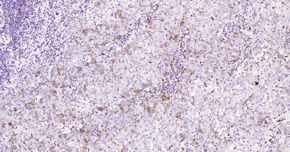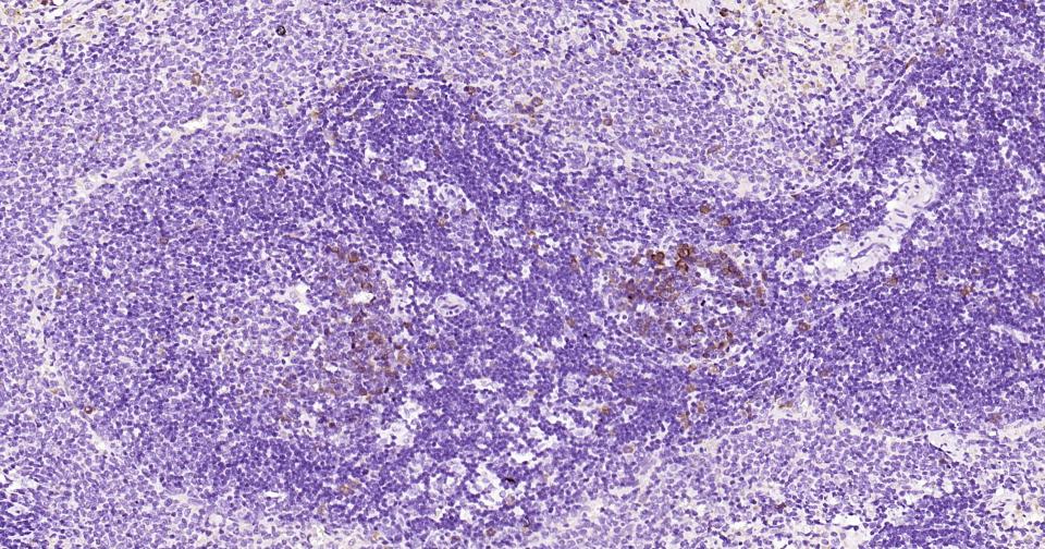 Paraformaldehyde-fixed, paraffin embedded Human Tonsil; Antigen retrieval by boiling in sodium citrate buffer (pH6.0) for 15 min; Antibody incubation with Phospho-CDK1/2 (Thr14) Monoclonal Antibody, Unconjugated(bsm-61198R) at 1:200 overnight at 4°C, followed by conjugation to the SP Kit (Rabbit, SP-0023) and DAB (C-0010) staining.
