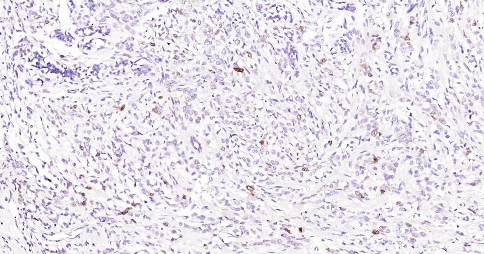 Paraformaldehyde-fixed, paraffin embedded Human Breast Cancer; Antigen retrieval by boiling in sodium citrate buffer (pH6.0) for 15 min; Antibody incubation with Phospho-CDK1/2 (Thr14) Monoclonal Antibody, Unconjugated(bsm-61198R) at 1:200 overnight at 4°C, followed by conjugation to the SP Kit (Rabbit, SP-0023) and DAB (C-0010) staining.