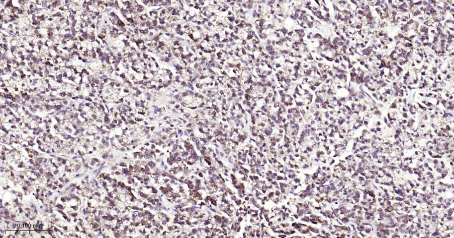 Paraformaldehyde-fixed, paraffin embedded Human Liver Cancer; Antigen retrieval by boiling in sodium citrate buffer (pH6.0) for 15 min; Antibody incubation with ATG12 Monoclonal Antibody, Unconjugated(bsm-61199R) at 1:200 overnight at 4°C, followed by conjugation to the bs-0295G-HRP and DAB (C-0010) staining.