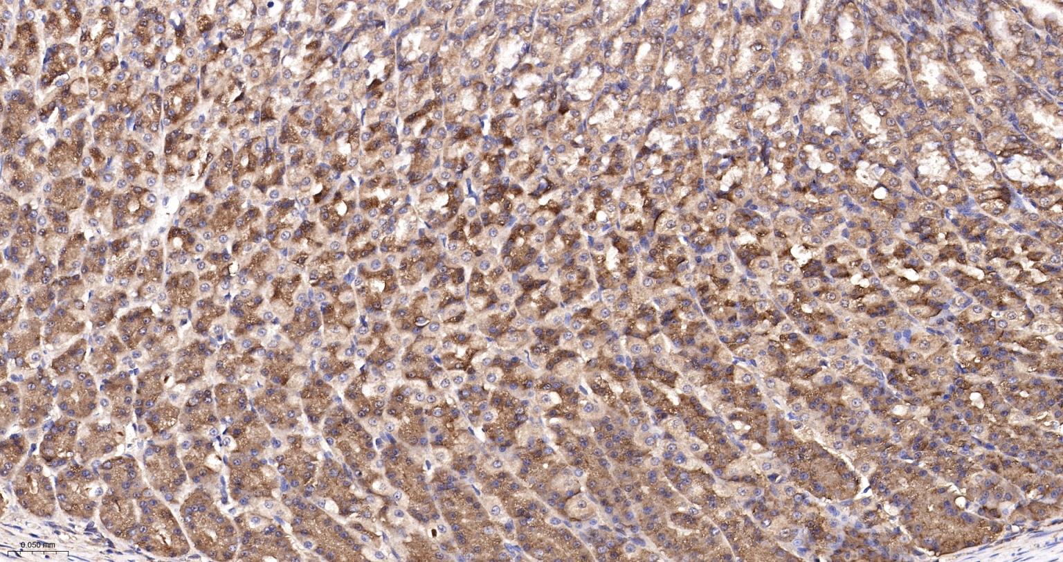 Paraformaldehyde-fixed, paraffin embedded Mouse stomach; Antigen retrieval by boiling in sodium citrate buffer (pH6.0) for 15 min; Antibody incubation with RhoA/B/C Monoclonal Antibody, Unconjugated (bsm-61200R) at 1:200 overnight at 4°C, followed by conjugation to the bs-0295G-HRP and DAB (C-0010) staining.