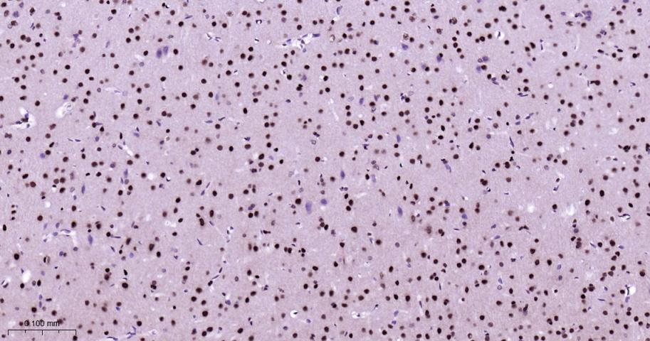 Paraformaldehyde-fixed, paraffin embedded Rat brain; Antigen retrieval by boiling in sodium citrate buffer (pH6.0) for 15 min; Antibody incubation with HP1 alpha Monoclonal Antibody, Unconjugated(bsm-61202R) at 1:200 overnight at 4°C, followed by conjugation to the bs-0295G-HRP and DAB (C-0010) staining.