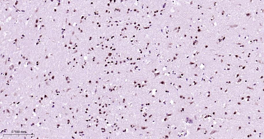 Paraformaldehyde-fixed, paraffin embedded Human Brain; Antigen retrieval by boiling in sodium citrate buffer (pH6.0) for 15 min; Antibody incubation with HP1 alpha Monoclonal Antibody, Unconjugated(bsm-61202R) at 1:200 overnight at 4°C, followed by conjugation to the bs-0295G-HRP and DAB (C-0010) staining.