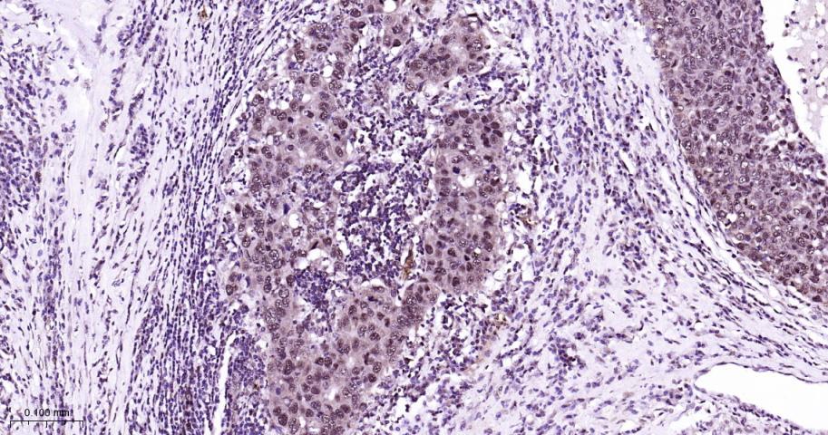 Paraformaldehyde-fixed, paraffin embedded Human Breast Cancer; Antigen retrieval by boiling in sodium citrate buffer (pH6.0) for 15 min; Antibody incubation with HP1 alpha Monoclonal Antibody, Unconjugated(bsm-61202R) at 1:200 overnight at 4°C, followed by conjugation to the bs-0295G-HRP and DAB (C-0010) staining.