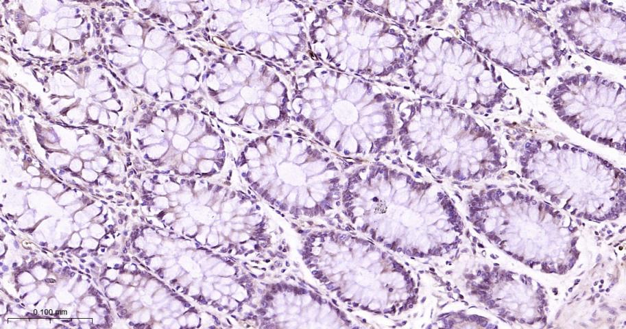 Paraformaldehyde-fixed, paraffin embedded Rat colon; Antigen retrieval by boiling in sodium citrate buffer (pH6.0) for 15 min; Antibody incubation with HP1 alpha Monoclonal Antibody, Unconjugated(bsm-61202R) at 1:200 overnight at 4°C, followed by conjugation to the bs-0295G-HRP and DAB (C-0010) staining.