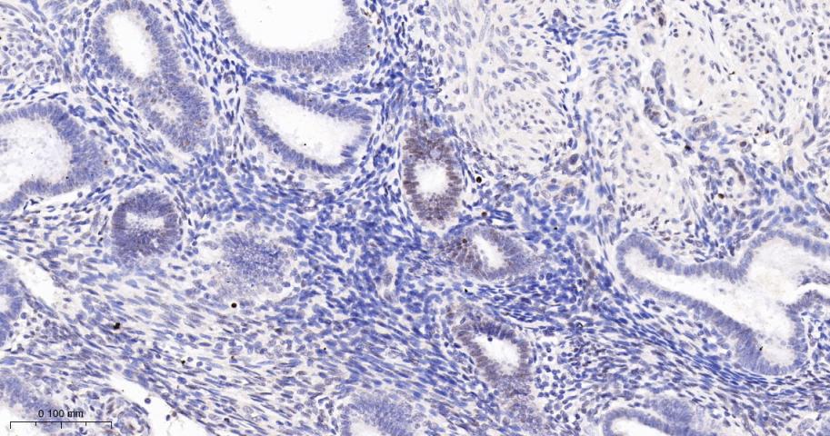 Paraformaldehyde-fixed, paraffin embedded Human Uterus; Antigen retrieval by boiling in sodium citrate buffer (pH6.0) for 15 min; The section was incubated with GATA2/3 Monoclonal Antibody, Unconjugated (bsm-61203R) at 1:200 overnight at 4°C, followed by conjugation to the bs-0295G-HRP and DAB (C-0010) staining.