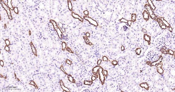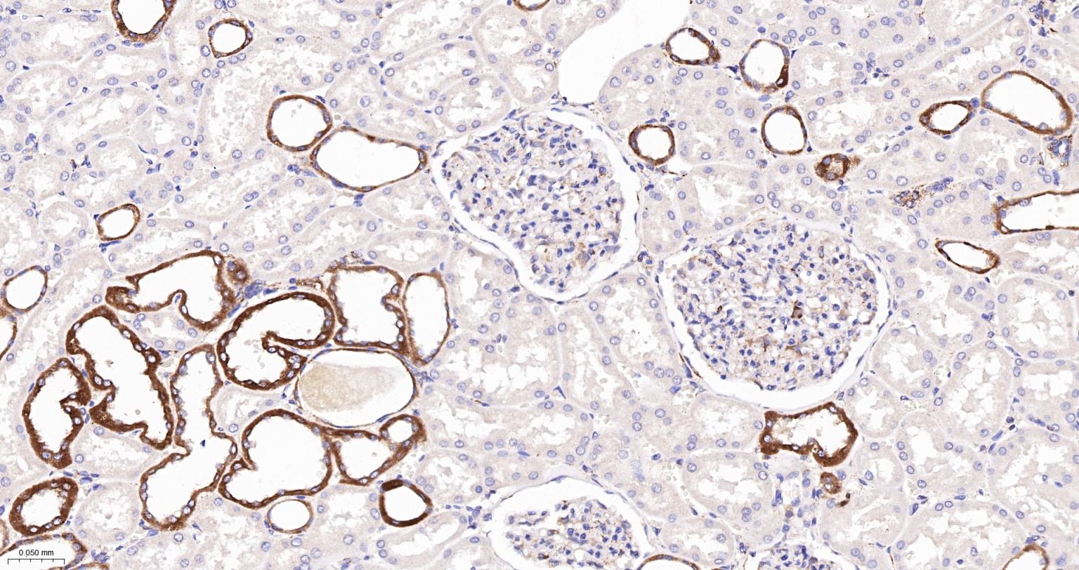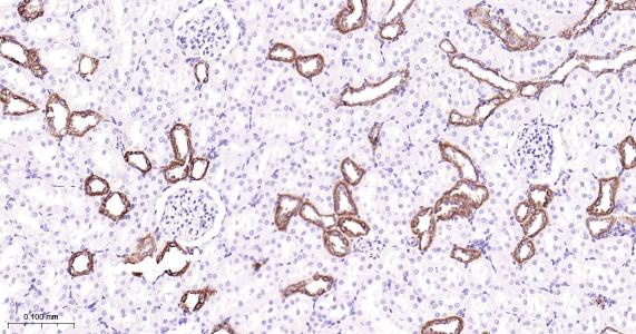Paraformaldehyde-fixed, paraffin embedded Mouse Kidney; Antigen retrieval by boiling in sodium citrate buffer (pH6.0) for 15 min; Antibody incubation with Hexokinase 1 Monoclonal Antibody, Unconjugated(bsm-61212R) at 1:200 overnight at 4°C, followed by conjugation to the bs-0295G-HRP and DAB (C-0010) staining.