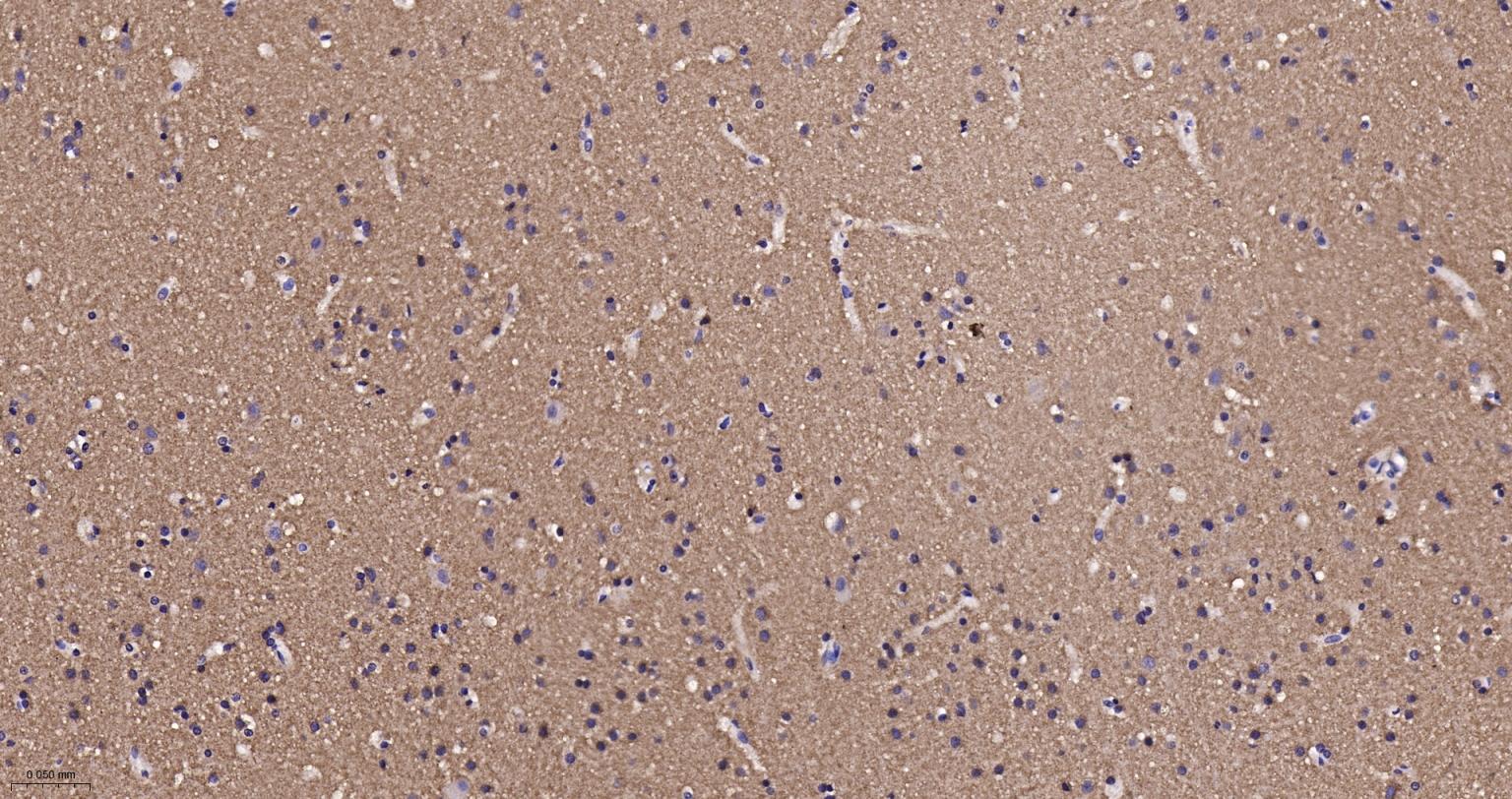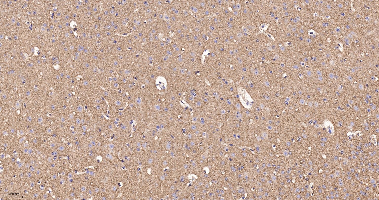 Paraformaldehyde-fixed, paraffin embedded Rat Cerebrum; Antigen retrieval by boiling in sodium citrate buffer (pH6.0) for 15 min; Antibody incubation with Hexokinase 1 Monoclonal Antibody, Unconjugated (bsm-61212R) at 1:200 overnight at 4°C, followed by conjugation to the bs-0295G-HRP and DAB (C-0010) staining.