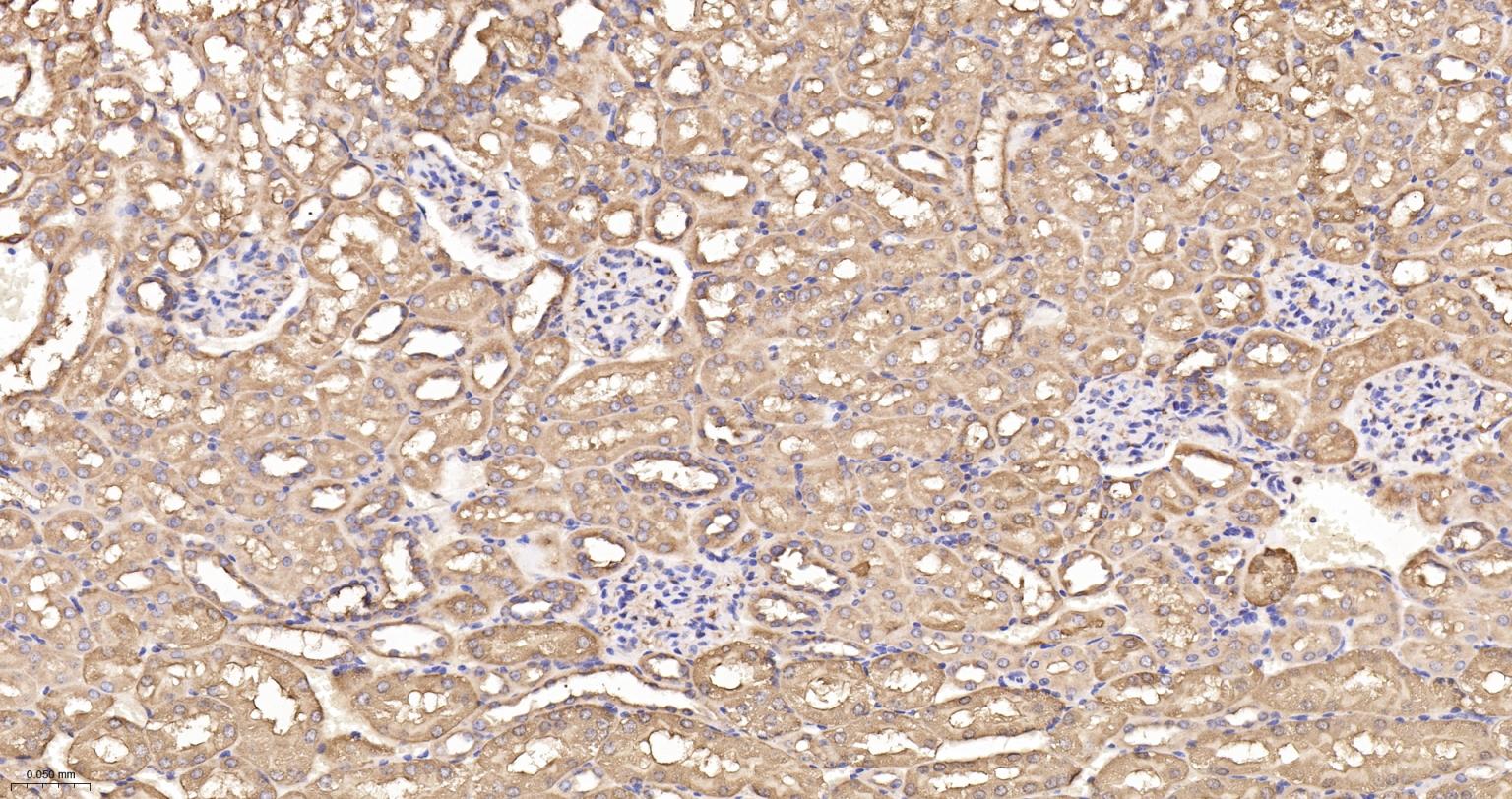Paraformaldehyde-fixed, paraffin embedded Mouse Kidney; Antigen retrieval by boiling in sodium citrate buffer (pH6.0) for 15 min; The section was incubated with PP2A alpha/beta Monoclonal Antibody, Unconjugated (bsm-61223R) at 1:200 overnight at 4°C, followed by conjugation to the bs-0295G-HRP and DAB (C-0010) staining.