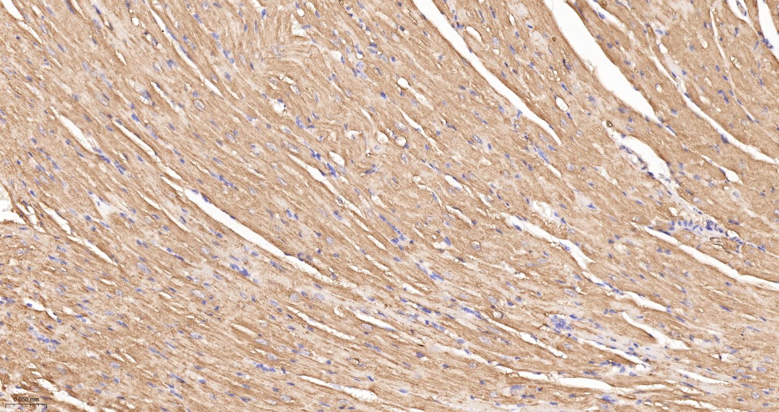 Paraformaldehyde-fixed, paraffin embedded Mouse Heart; Antigen retrieval by boiling in sodium citrate buffer (pH6.0) for 15 min; The section was incubated with PP2A alpha/beta Monoclonal Antibody, Unconjugated (bsm-61223R) at 1:200 overnight at 4°C, followed by conjugation to the bs-0295G-HRP and DAB (C-0010) staining.