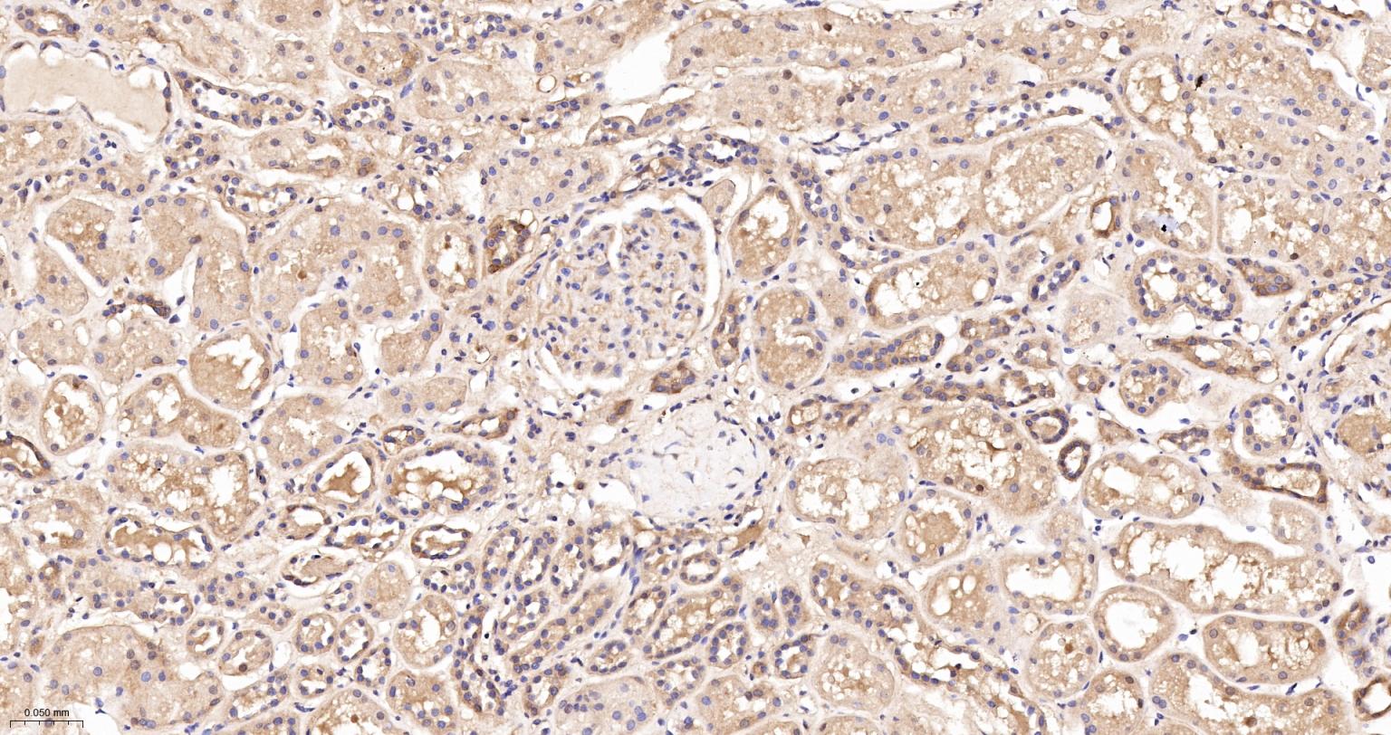 Paraformaldehyde-fixed, paraffin embedded Human Kidney; Antigen retrieval by boiling in sodium citrate buffer (pH6.0) for 15 min; The section was incubated with PP2A alpha/beta Monoclonal Antibody, Unconjugated (bsm-61223R) at 1:200 overnight at 4°C, followed by conjugation to the bs-0295G-HRP and DAB (C-0010) staining.