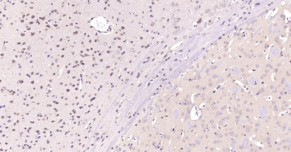 Paraformaldehyde-fixed, paraffin embedded Rat Cerebrum; Antigen retrieval by boiling in sodium citrate buffer (pH6.0) for 15 min; Antibody incubation with TPH Monoclonal Antibody, Unconjugated(bsm-61227R) at 1:200 overnight at 4°C, followed by conjugation to the SP Kit (Rabbit, SP-0023) and DAB (C-0010) staining.