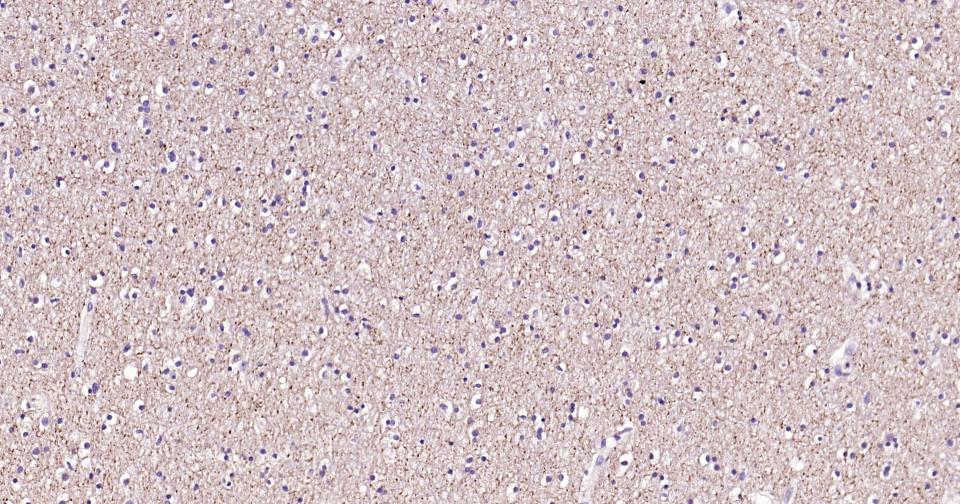 Paraformaldehyde-fixed, paraffin embedded Human Cerebrum; Antigen retrieval by boiling in sodium citrate buffer (pH6.0) for 15 min; Antibody incubation with TPH Monoclonal Antibody, Unconjugated(bsm-61227R) at 1:200 overnight at 4°C, followed by conjugation to the SP Kit (Rabbit, SP-0023) and DAB (C-0010) staining.
