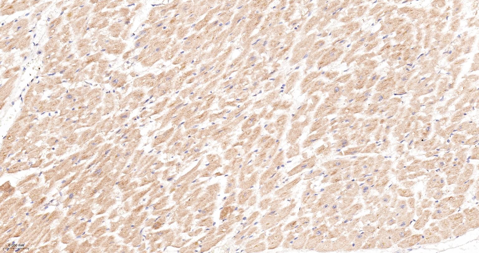 Paraformaldehyde-fixed, paraffin embedded Human Heart; Antigen retrieval by boiling in sodium citrate buffer (pH6.0) for 15 min; The section was incubated with HTRA2 Monoclonal Antibody, Unconjugated (bsm-61230R) at 1:200 overnight at 4°C, followed by conjugation to the bs-0295G-HRP and DAB (C-0010) staining.