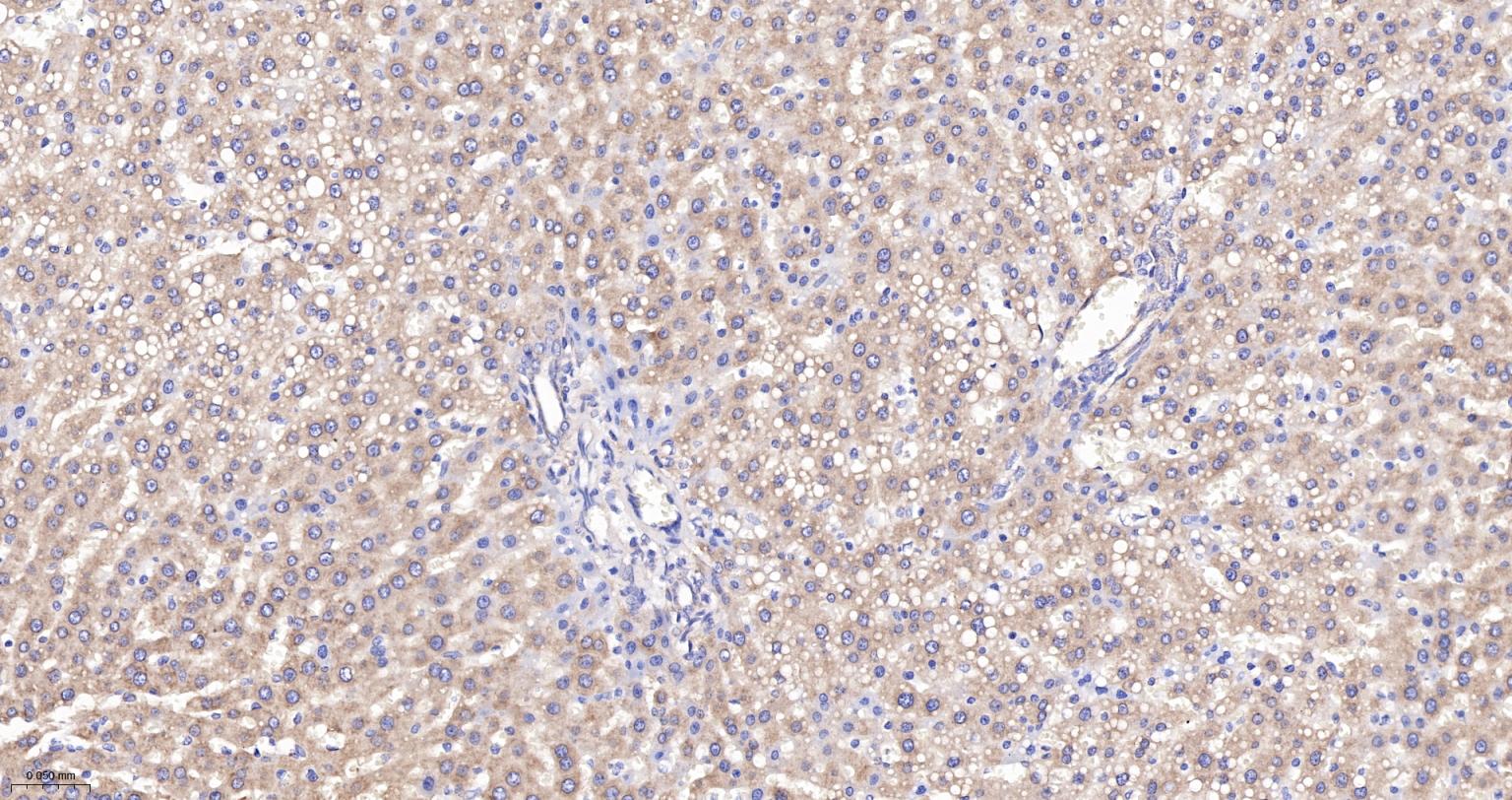 Paraformaldehyde-fixed, paraffin embedded Mouse Liver; Antigen retrieval by boiling in sodium citrate buffer (pH6.0) for 15 min; The section was incubated with Radixin Monoclonal Antibody, Unconjugated (bsm-61253R) at 1:200 overnight at 4°C, followed by conjugation to the bs-0295G-HRP and DAB (C-0010) staining.