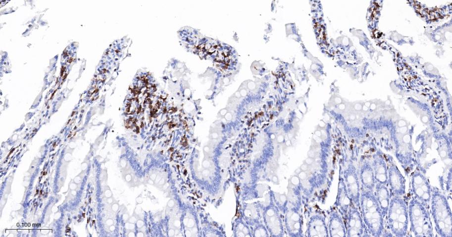 Paraformaldehyde-fixed, paraffin embedded Human Small Intestine; Antigen retrieval by boiling in sodium citrate buffer (pH6.0) for 15 min; The section was incubated with LSP1 Monoclonal Antibody, Unconjugated (bsm-61255R) at 1:200 overnight at 4°C, followed by conjugation to the bs-0295G-HRP and DAB (C-0010) staining.
