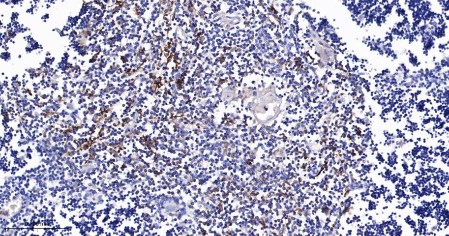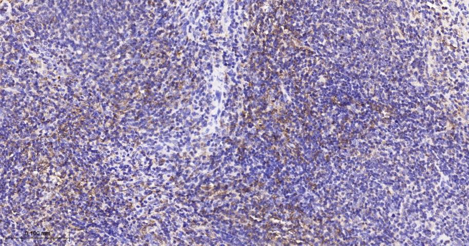Paraformaldehyde-fixed, paraffin embedded Rat spleen; Antigen retrieval by boiling in sodium citrate buffer (pH6.0) for 15 min; The section was incubated with LSP1 Monoclonal Antibody, Unconjugated (bsm-61255R) at 1:200 overnight at 4°C, followed by conjugation to the bs-0295G-HRP and DAB (C-0010) staining.